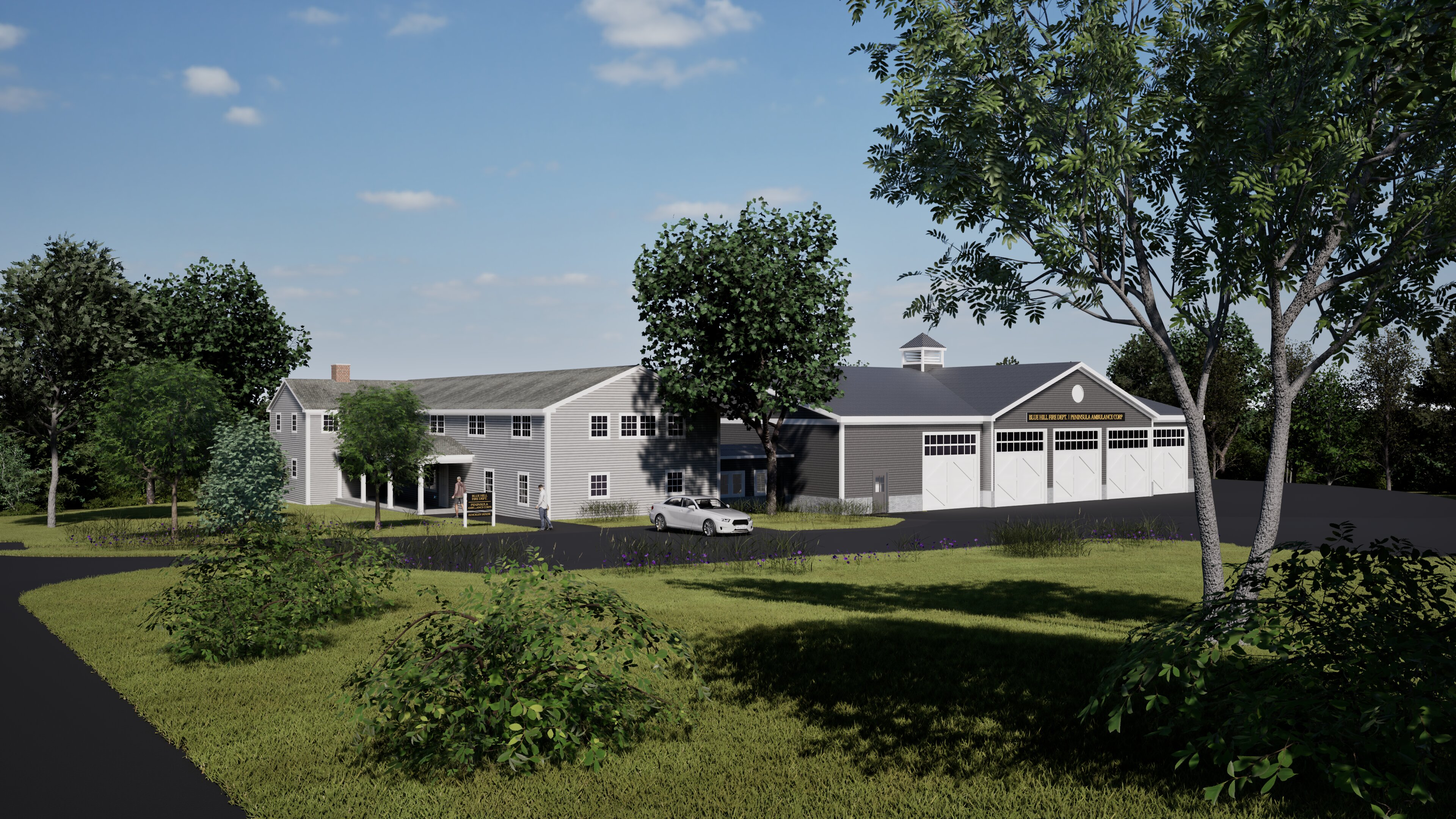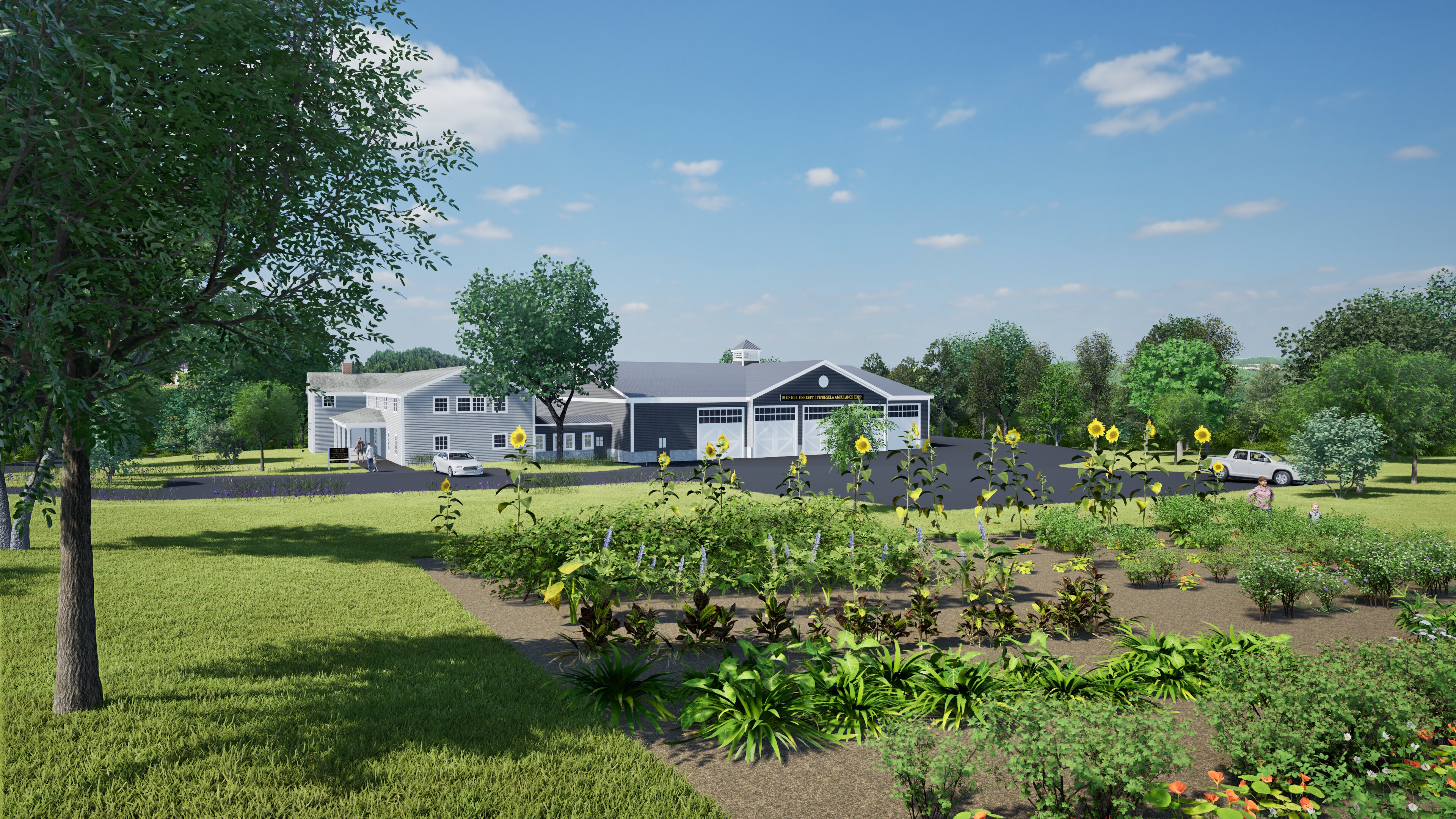 The architectural firm hired to assist the Town in considering alternatives for a relocated fire station has prepared some preliminary conceptual renderings for the facility.