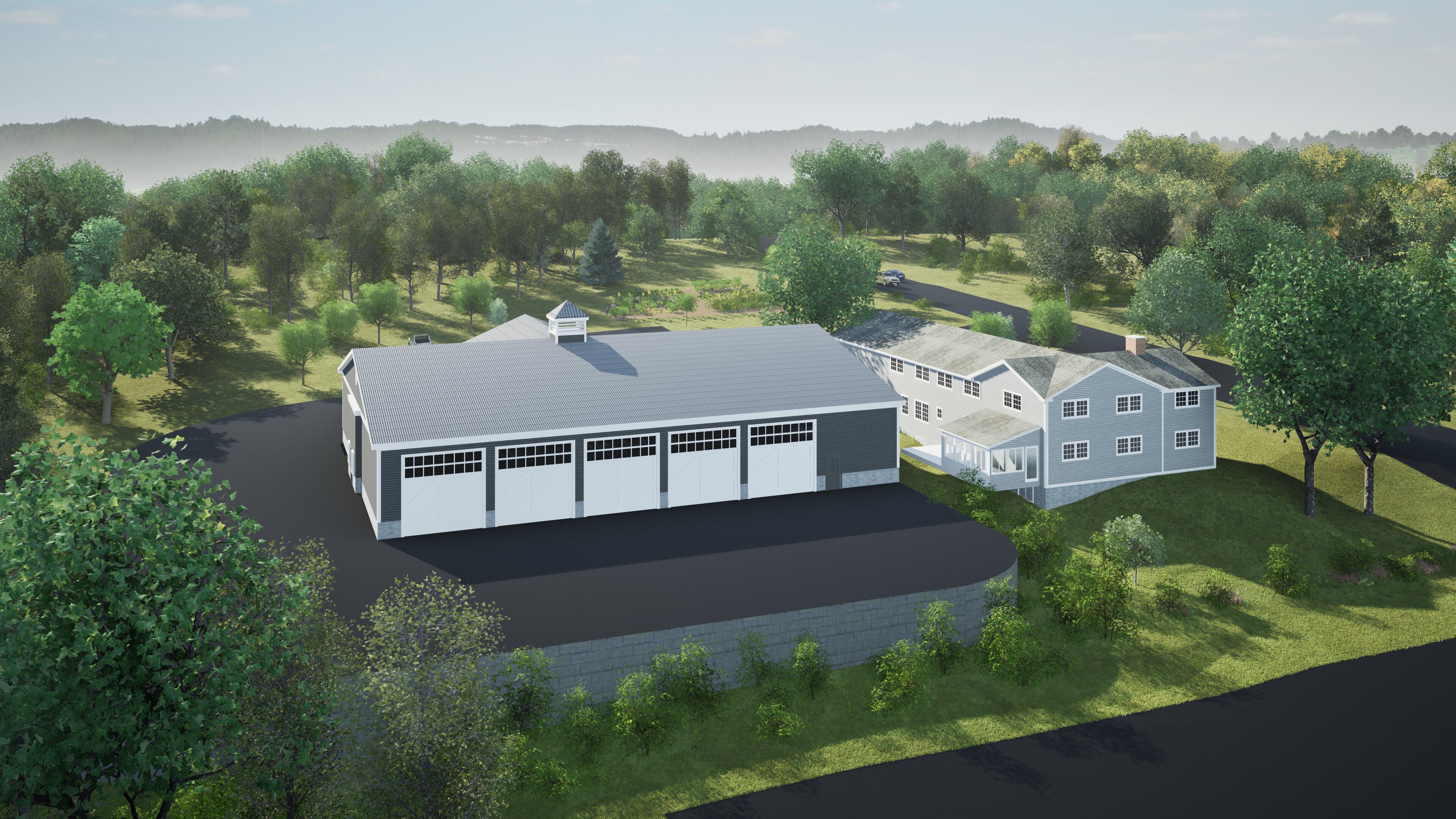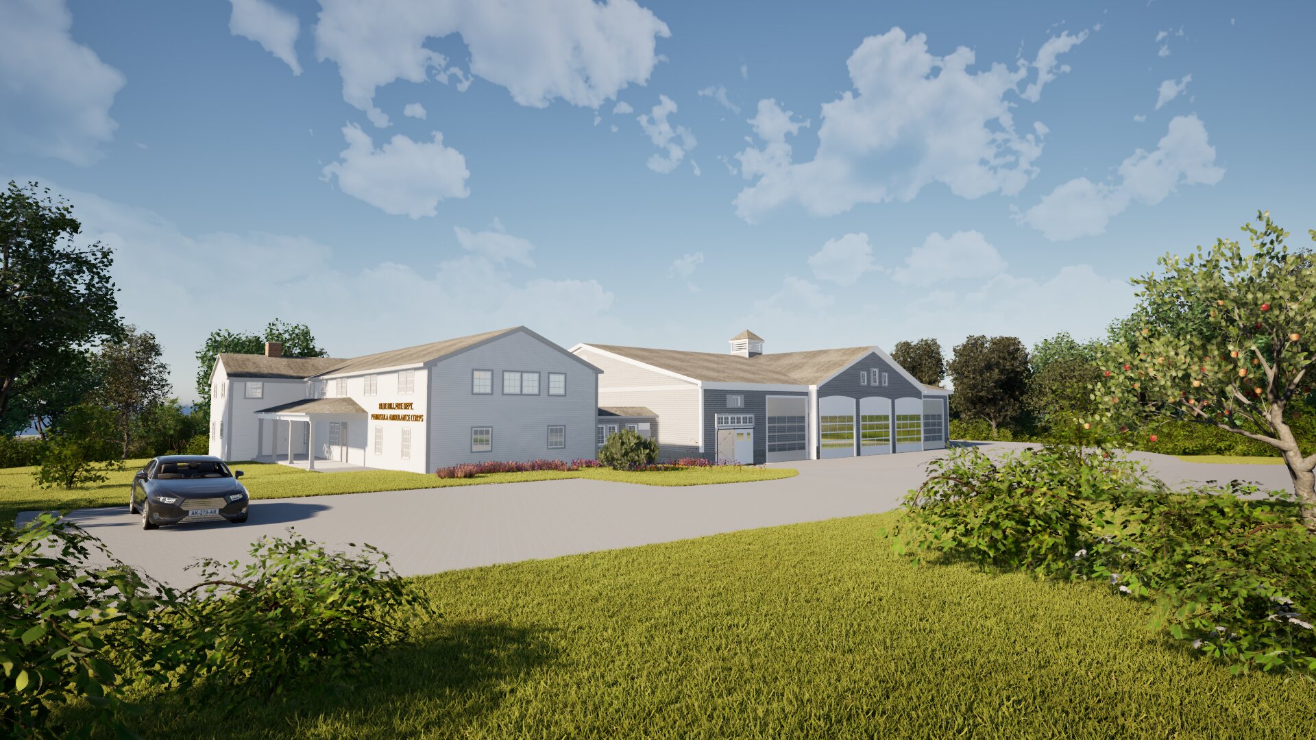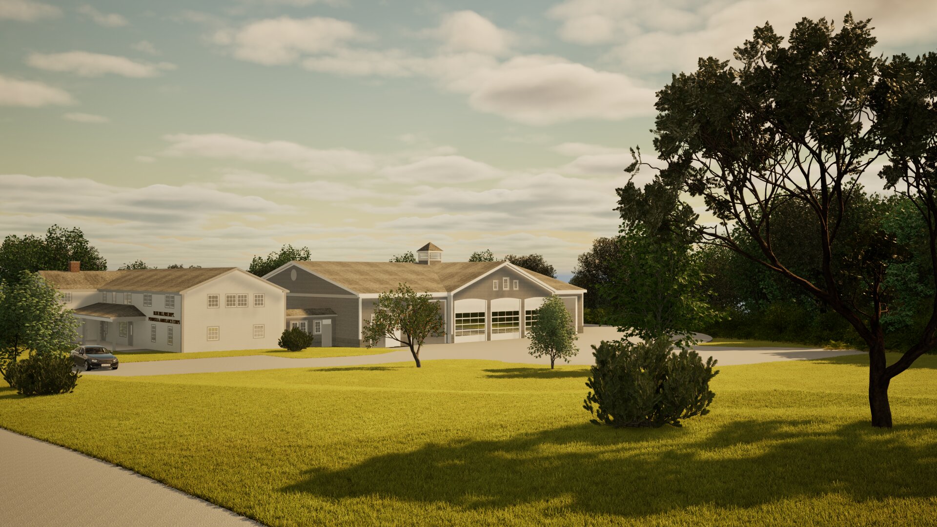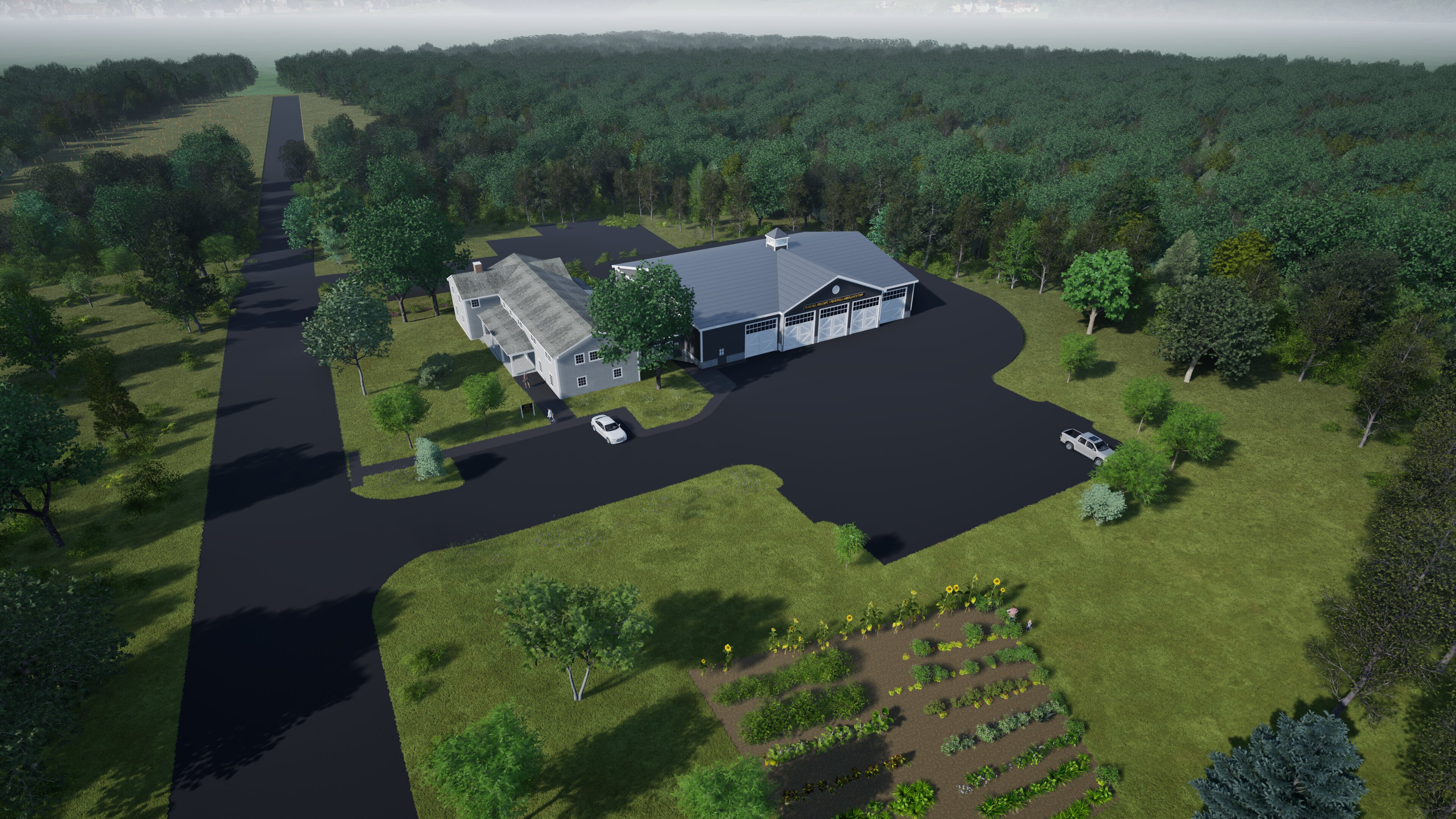 The most significant addition to the site would be an addition to the rear of the dorm to house the fire trucks, ambulances, and other equipment.