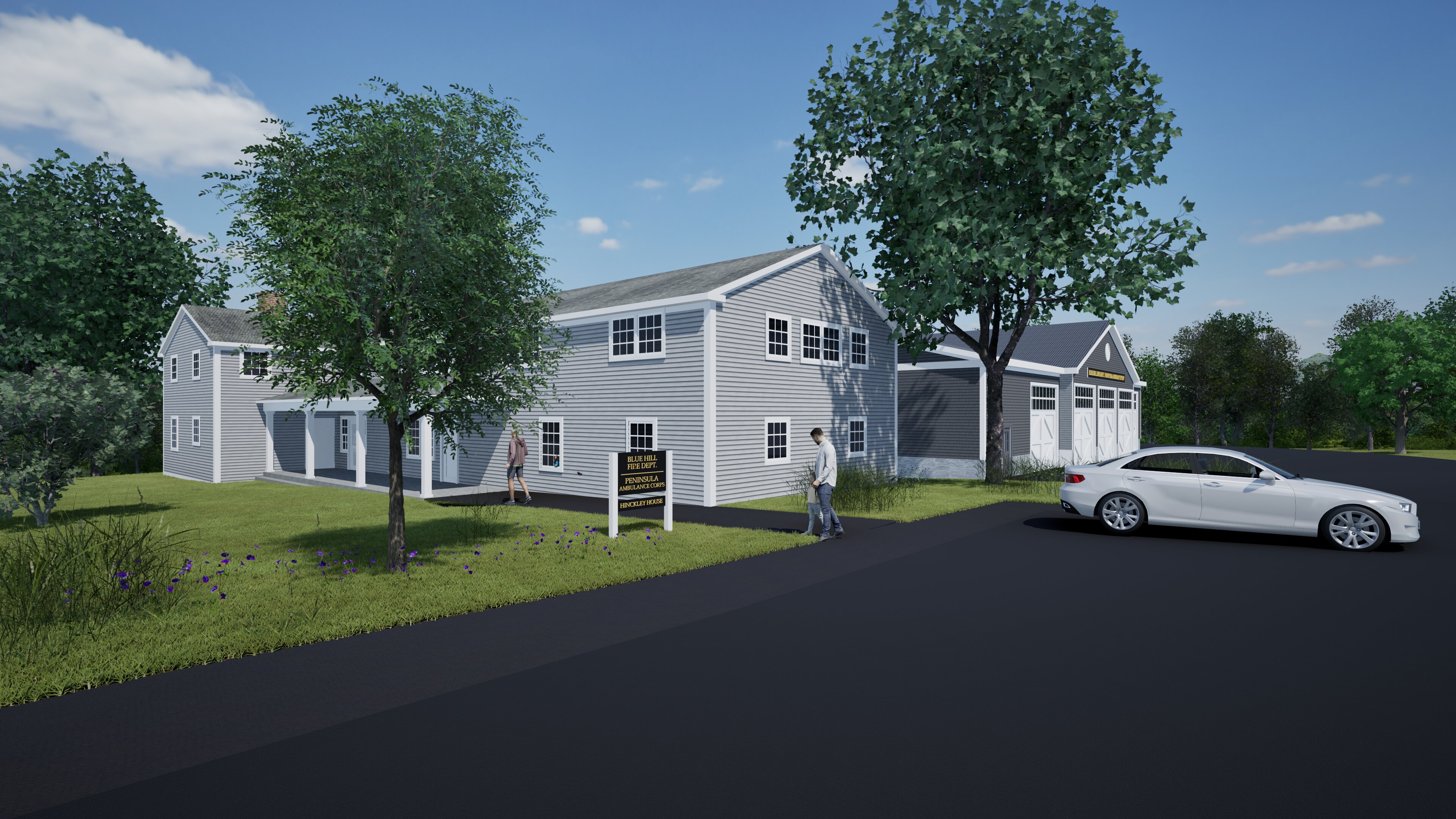 As noted above, the concept design is focused on reducing the visibility of the apparatus bay and making the visible portions of that building similar (to the extent reasonably possible) to the architecture elsewhere in Blue Hill village.