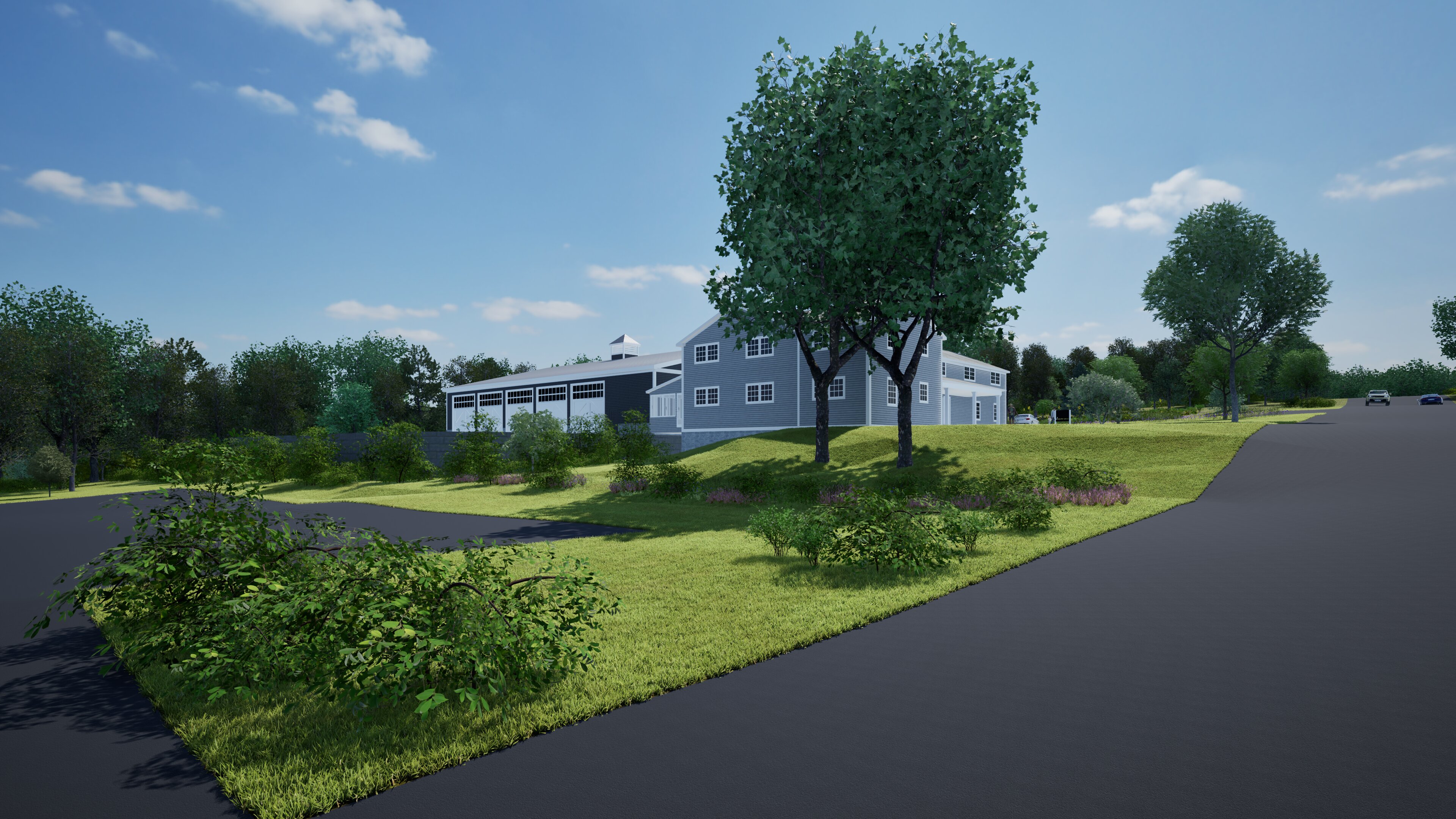 The most significant changes are the addition of an “apparatus bay” to house the fire, rescue, and ambulance equipment and additional paved area to accommodate the movement of these vehicles. These new features have been positioned behind the existing building with landscape buffers to minimize their visibility from the street.
